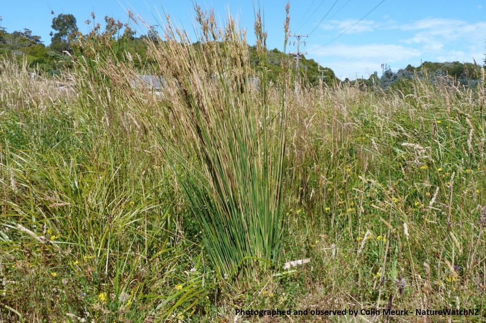 Vigorous blue-green sedge or wetland rush of coastal to lowland, damp open ground. Forms clumps. Will tolerate drier areas. Full sun – semi-shade. Evergreen, hardy.