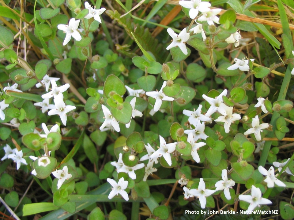 Creeping plant with white flowers, small round, fragrant minty leaves. Easily grown in most garden conditions.