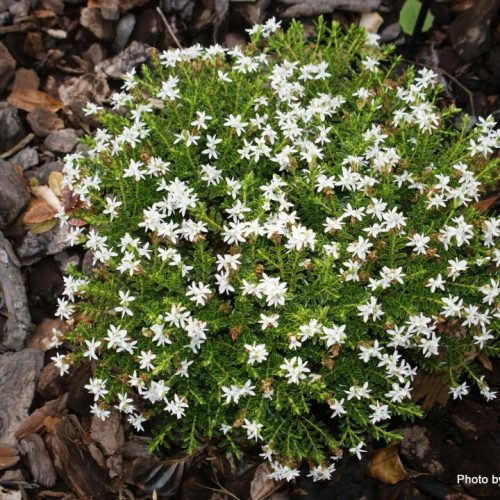 Oval shaped dark green shrub, white flowers early summer. Evergreen, frost hardy....
